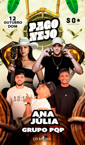 PAGONEJO com atrações de ANA JULIA, GRUPO PQP e DJ MEIRA na casa SO. Domingo especial com múltiplas atrações musicais!