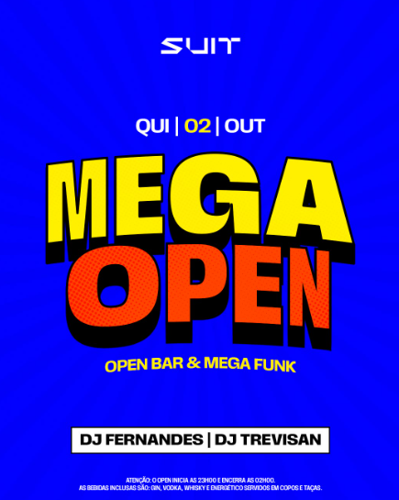 Mega Open Bar & Mega Funk com DJ Fernandes e DJ Trevisan.