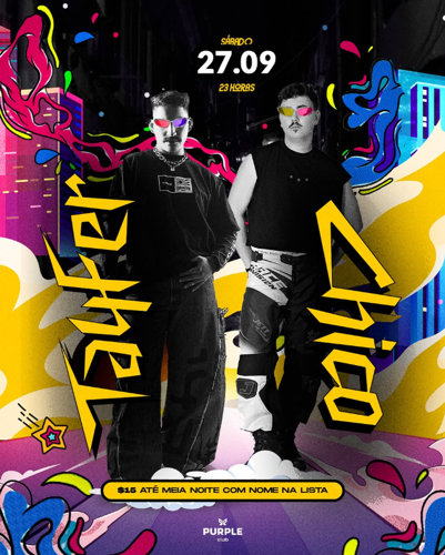 Evento na PURPLE com atrações de Tayfer e Chico. Uma noite de muita música e animação!.